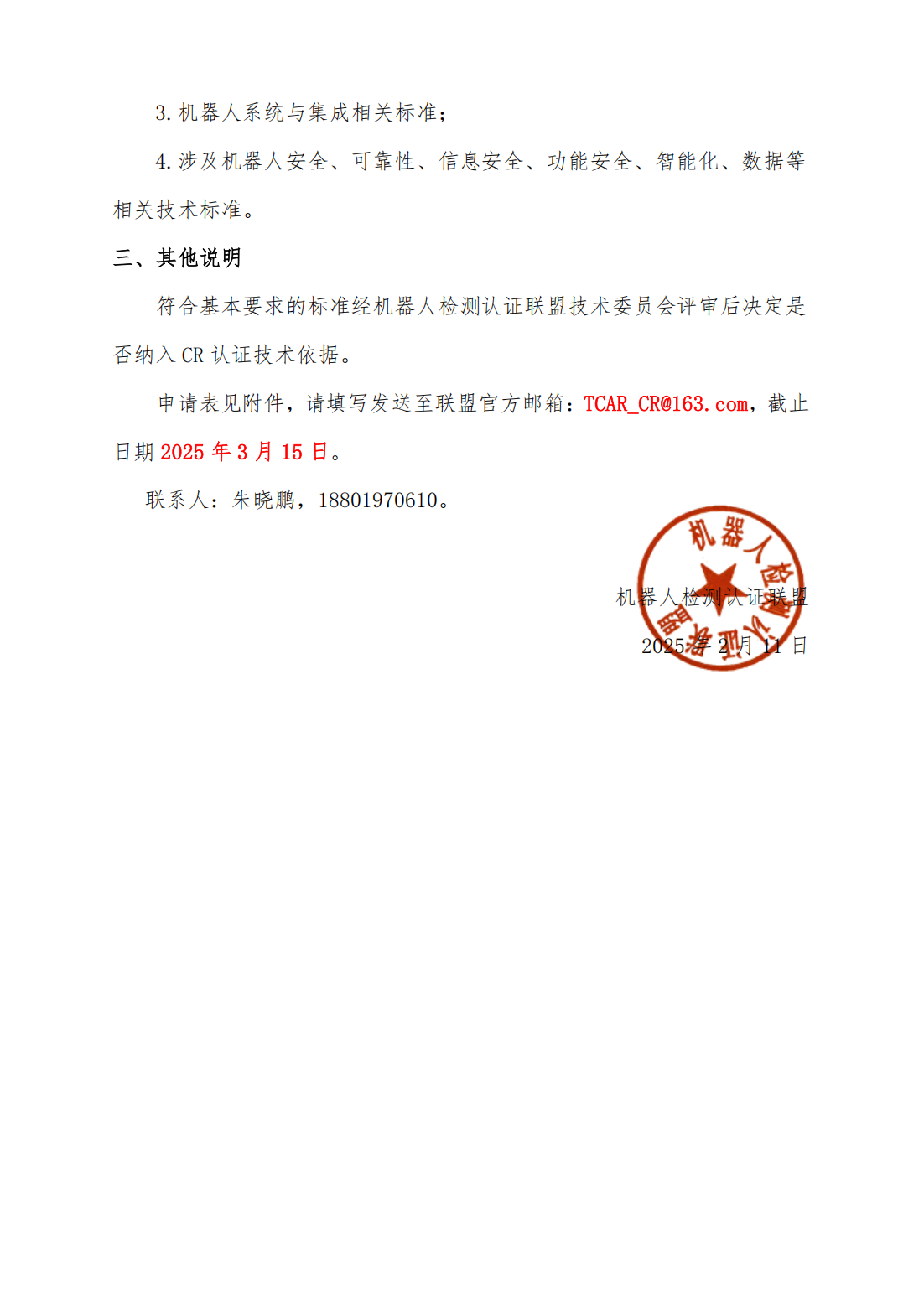 中国机器人认证(China Robot Certification,简称CR认证),于2016年由国家认监委、原质检总局联合国家发改委、工业和信息化部等部门向社会发布实施,是世界范围内唯一由国家推动的高端认证。