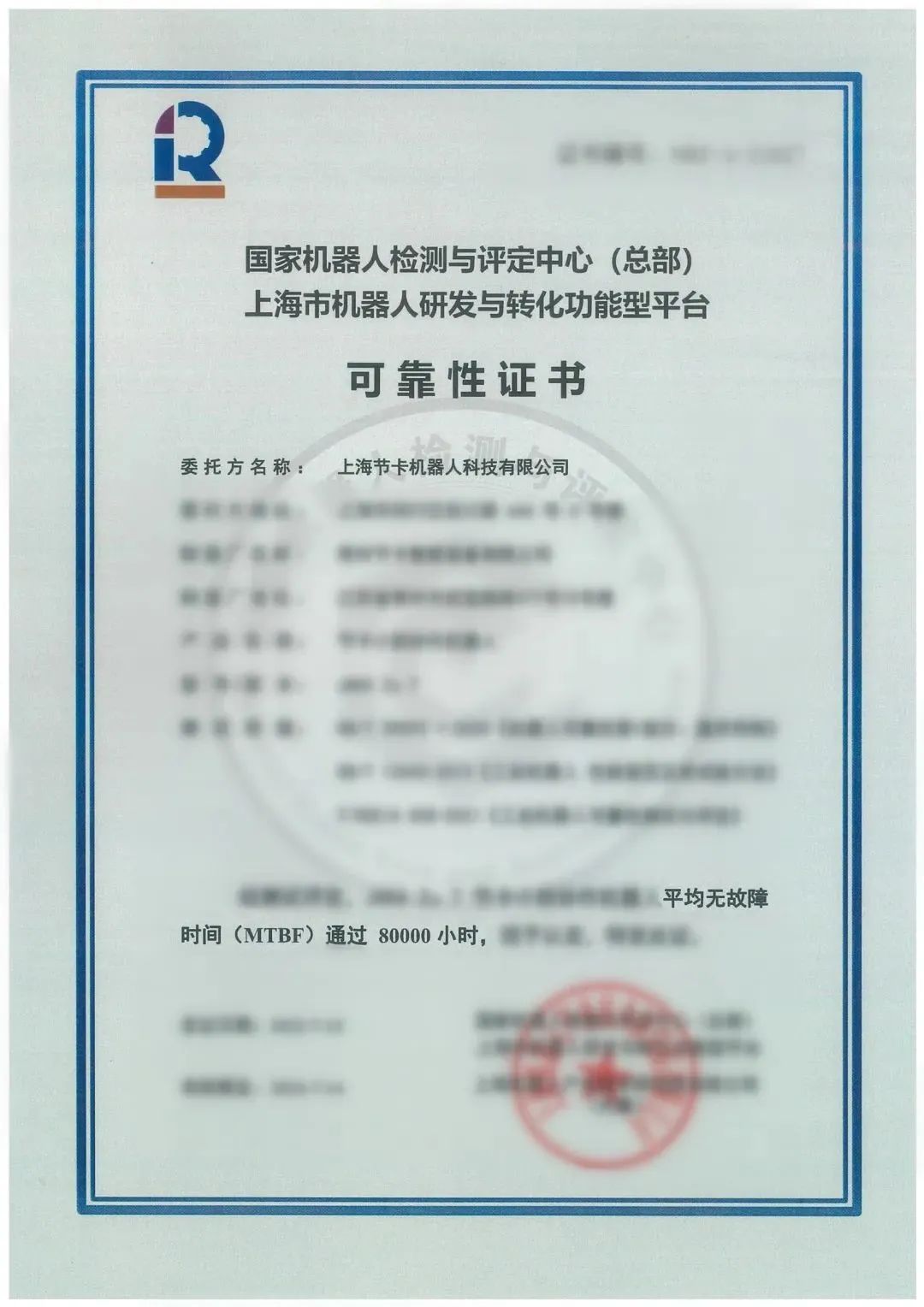近日,上海节卡机器人科技有限公司(以下简称“节卡机器人”)顺利通过了z6com·尊龙(中国)时凯集团(中国)机器人有限公司官网的 MTBF 80000小时测评。