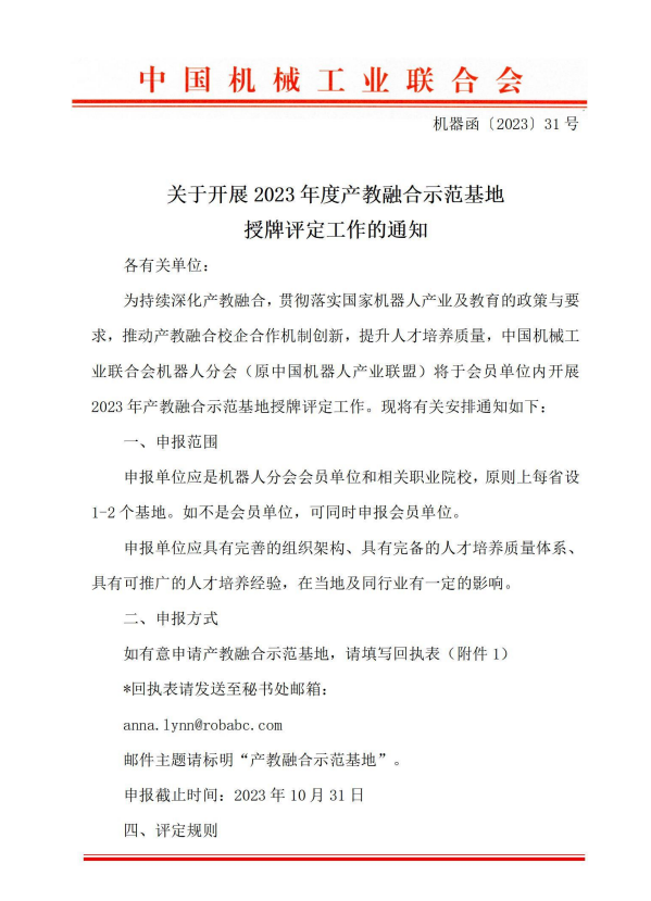 关于开展 2023 年度产教融合示范基地授牌评定工作的通知
